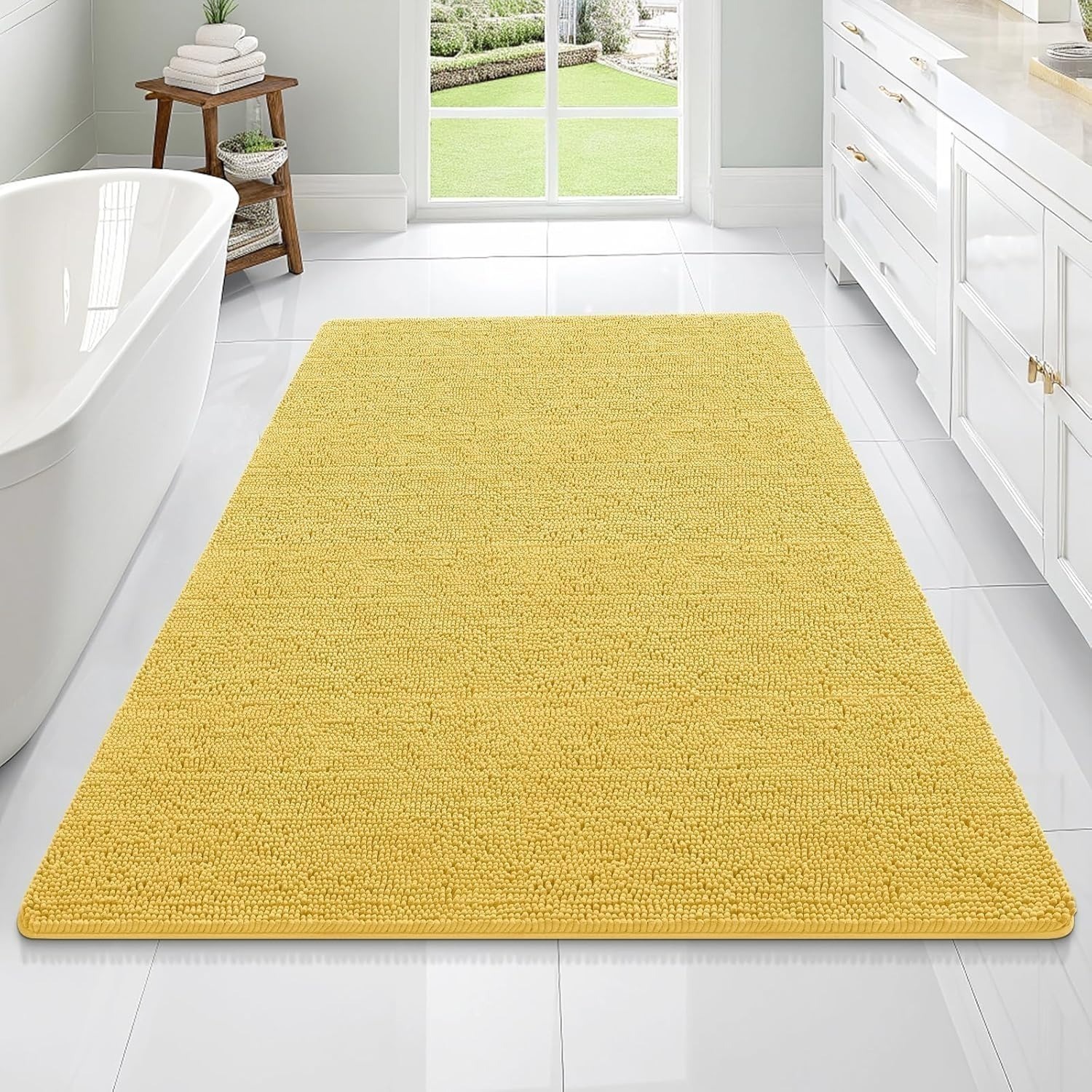 Современный, практичный и комфортный коврик для ванной, который успешно решает основные проблемы: впитывает влагу, быстро сохнет и не скользит. Его большой размер создает просторную зону комфорта, идеально подходящую для размещения вдоль ванны или душевой кабины. Такой формат очень удобен для просторных ванных комнат и семейного использования.