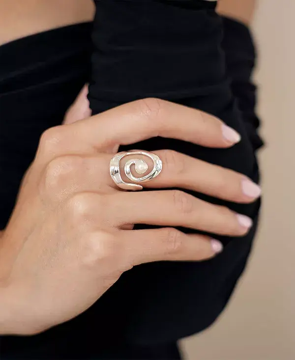 Кольцо с перламутром Aura Swirl сочетает в себе современную плавность и классическое очарование благодаря блестящему перламутру, обрамленному закрученной полированной полосой.