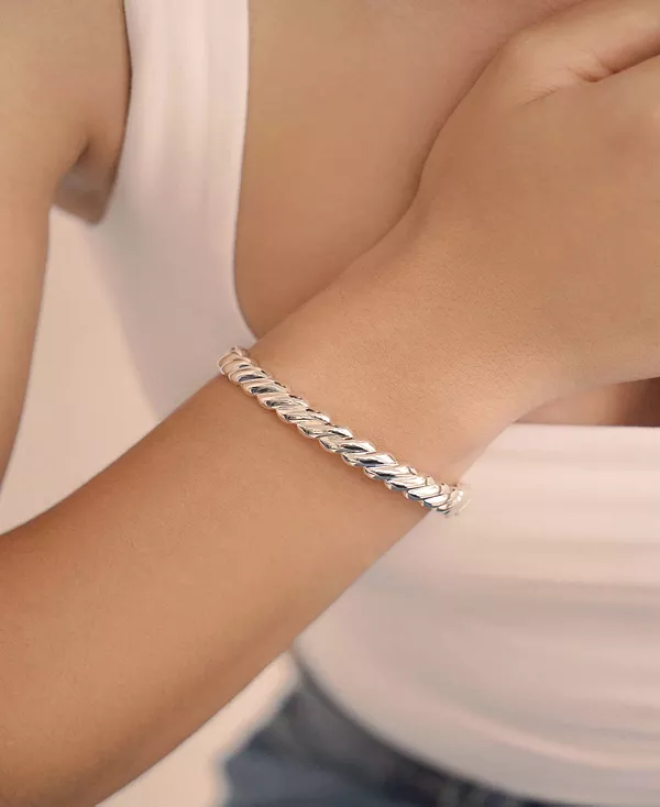 Простой, но стильный браслет Twisted Stacking Bangle отличается тонким, скрученным дизайном, который добавляет изящную текстуру — идеально подходит для ношения в комплекте или отдельно.