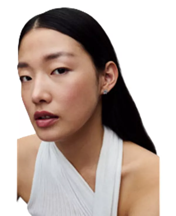 Серьги-гвоздики «Гербарий» из стерлингового серебра с покрытием из 14-каратного золота с прозрачными кубическими цирконами.