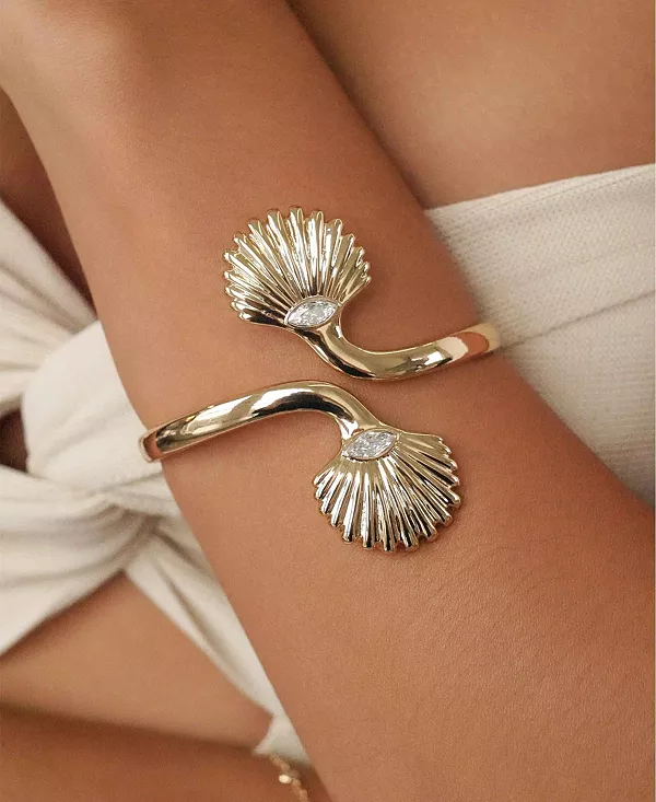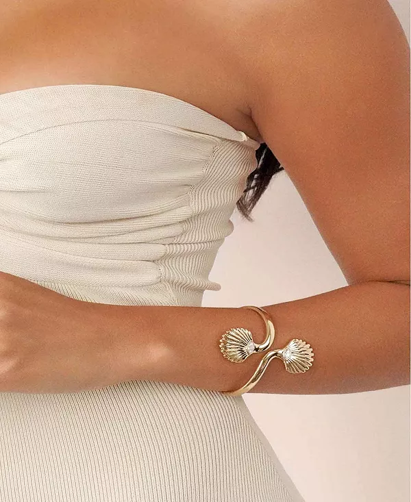Браслет-манжета Santorini Shell, вдохновлённый красотой моря, украшен элегантным гребешком, доступным в золоте или серебре на ваш выбор. Это украшение вне времени, которое добавит нотку прибрежного очарования любому образу.