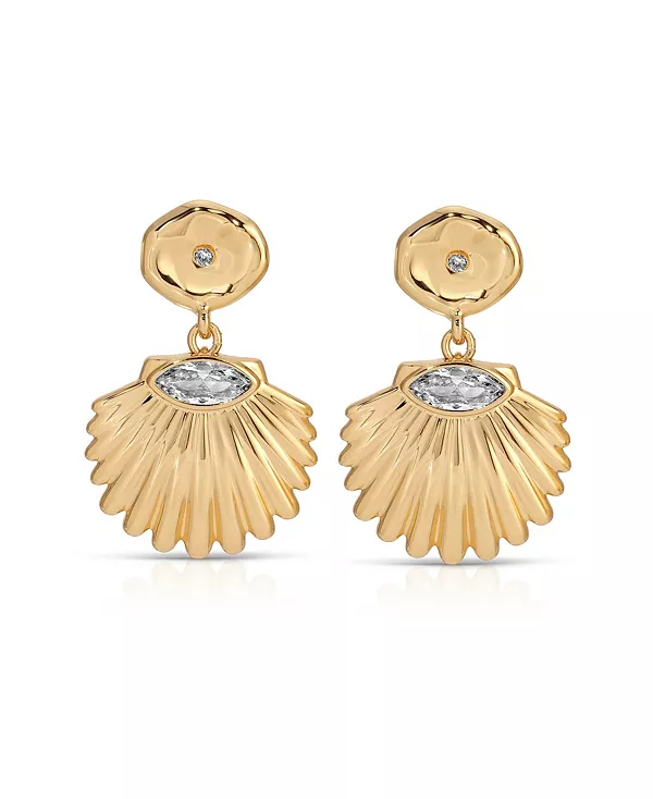 Серьги-капельки Santorini Shell украшены изысканной подвеской в виде морской раковины, украшенной сверкающими кристаллами кубического циркония. Этот элегантный дизайн добавляет легкий прибрежный штрих с ноткой гламура и идеально подходит для того, чтобы дополнить ваш стиль изысканным и уникальным образом.