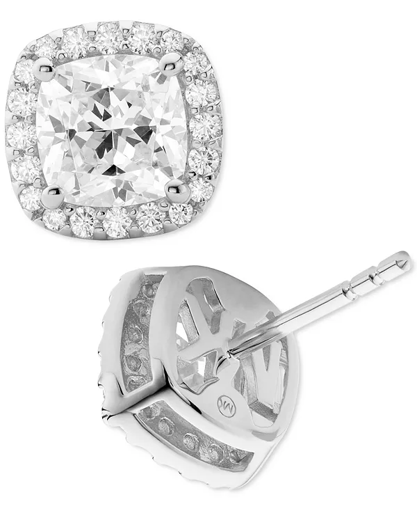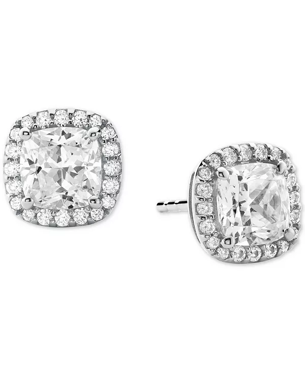 Камни огранки «кушон» окружены мерцающими акцентами, создавая эффект ореола на этих серьгах-гвоздиках от Michael Kors.