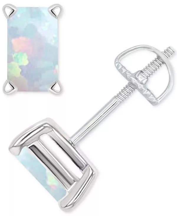 Серьги-Гвоздики с завинчивающейся крышкой из выращенного в лаборатории опала (3/8 карата) Macy'S, silver