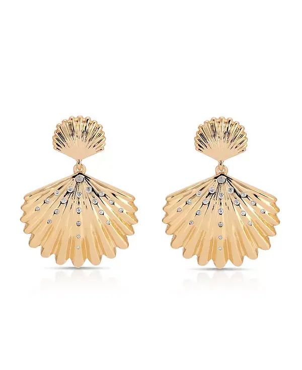 Почувствуйте сияние золотого часа с этими сказочными серьгами-ракушками в форме капель. Лёгкие и сверкающие, они добавят очарования морского побережья и солнечного блеска любому образу — идеально для тех, кто любит морской отдых.