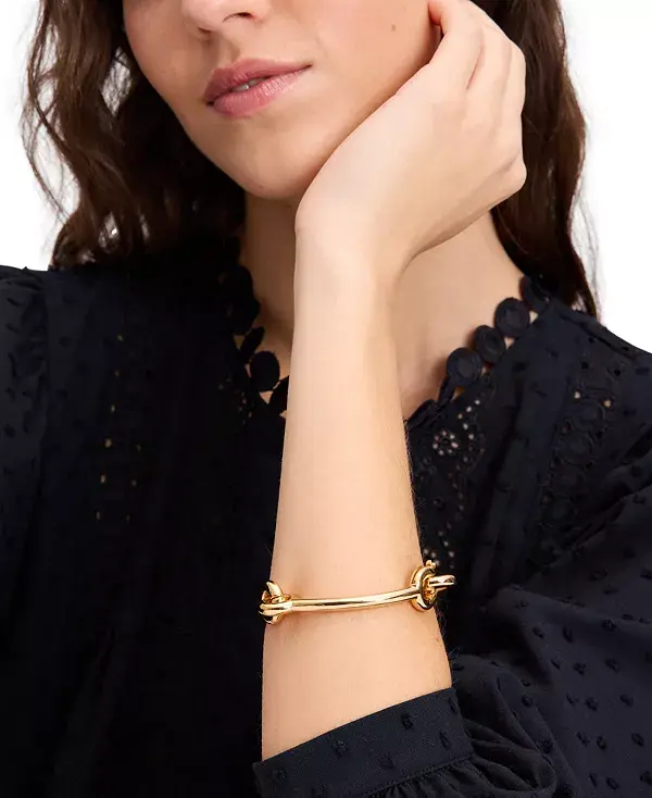 Три сегмента соединены вместе в замок в дизайне этого современного браслета-бэнгл от Kate Spade New York.
