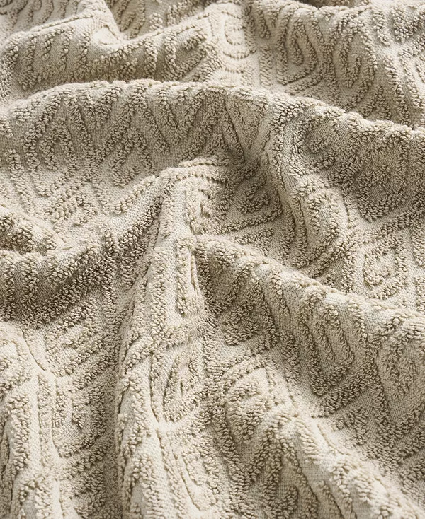 Изумительный рисунок украшает это необычное однотонное полотенце, делая его идеальным повседневным аксессуаром, который добавит элегантности вашей ванной комнате.