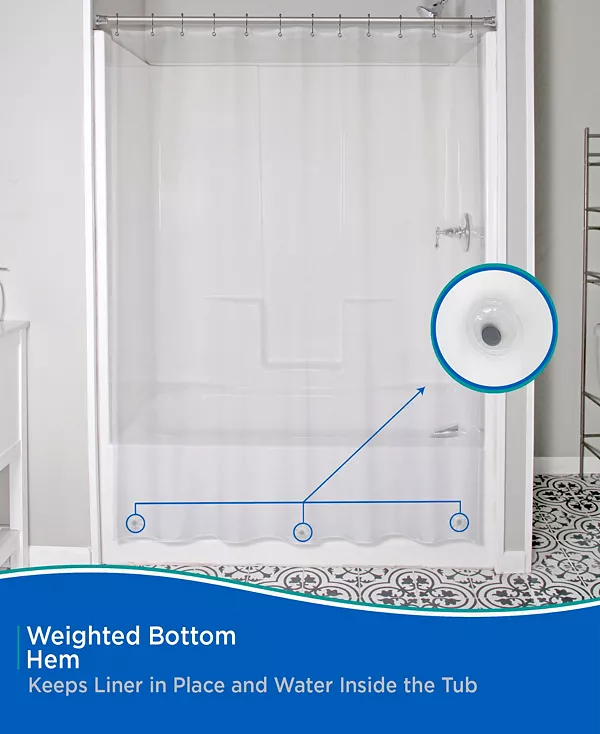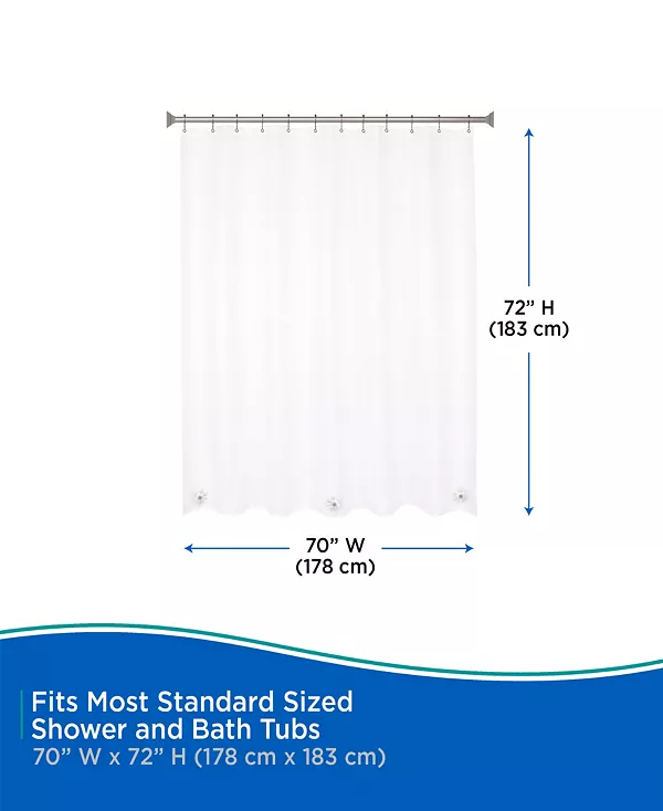 Подкладка для душевой шторки Kenney средней плотности Peva изготовлена из экологически чистого материала Peva, не содержащего ПВХ и не имеющего запаха. Подкладка имеет 12 отверстий для подвешивания с металлическими люверсами, устойчивыми к ржавчине, которые предотвращают разрывы на крючках и кольцах для душа. Утяжелённый край водонепроницаемой подкладки надёжно фиксирует подкладку, предотвращая попадание воды в ванну и предотвращая её попадание на пол. Стандартный размер: ширина 70 дюймов, высота 72 дюйма (180 см x 183 см), что позволяет использовать его в большинстве душевых кабин и ванн.