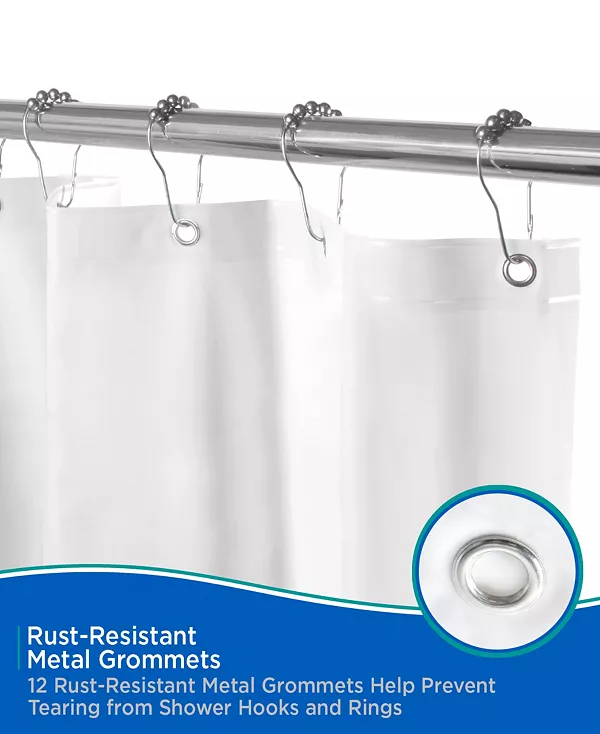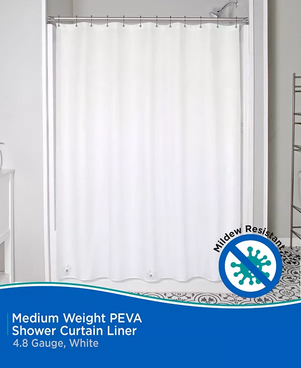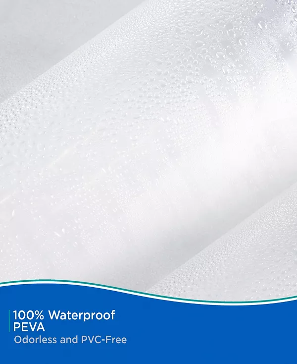 Подкладка для душевой шторки Kenney средней плотности Peva изготовлена из экологически чистого материала Peva, не содержащего ПВХ и не имеющего запаха. Подкладка имеет 12 отверстий для подвешивания с металлическими люверсами, устойчивыми к ржавчине, которые предотвращают разрывы на крючках и кольцах для душа. Утяжелённый край водонепроницаемой подкладки надёжно фиксирует подкладку, предотвращая попадание воды в ванну и предотвращая её попадание на пол. Стандартный размер: ширина 70 дюймов, высота 72 дюйма (180 см x 183 см), что позволяет использовать его в большинстве душевых кабин и ванн.