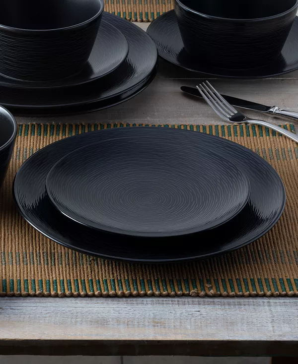 Извилистые концентрические круги образуют тональный узор, придавая этим обеденным тарелкам от Noritake естественный вид и ощущение свежести.