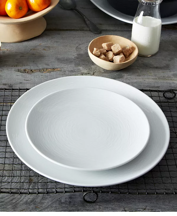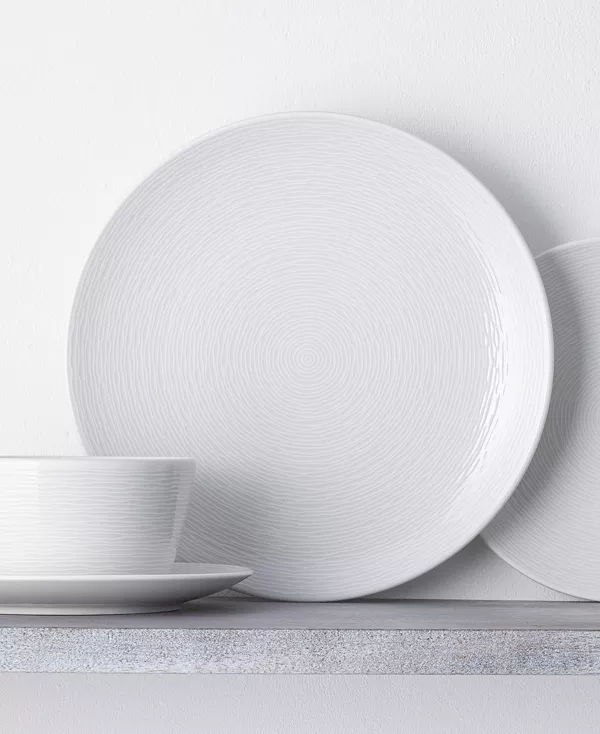 Извилистые концентрические круги образуют тональный узор, придавая этим обеденным тарелкам от Noritake естественный вид и ощущение свежести.