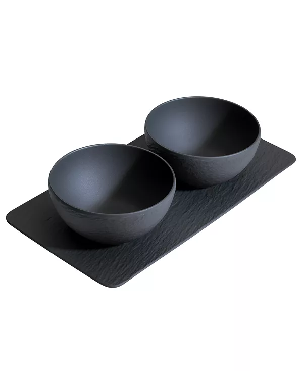 В комплект входят: 1 большой прямоугольный сервировочный поднос и 2 универсальные миски