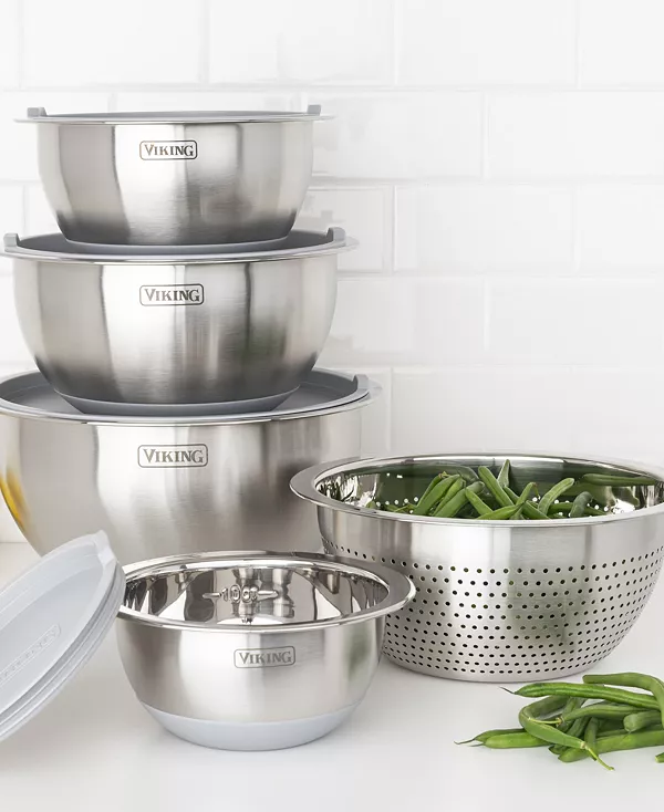 Приготовление еды по-домашнему стало проще с этим профессиональным набором из 9 мисок из нержавеющей стали с силиконовым дном и крышкой от Viking. Изготовленные из прочной нержавеющей стали, эти миски идеально подходят для подготовки, смешивания, подачи и всего остального.