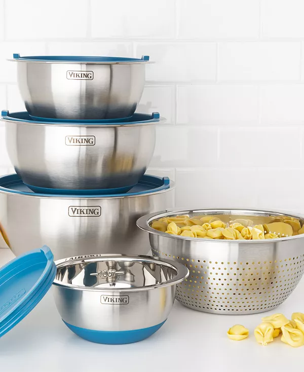 Приготовление еды по-домашнему стало проще с этим профессиональным набором из 9 мисок из нержавеющей стали с силиконовым дном и крышкой от Viking. Изготовленные из прочной нержавеющей стали, эти миски идеально подходят для подготовки, смешивания, подачи и всего остального.