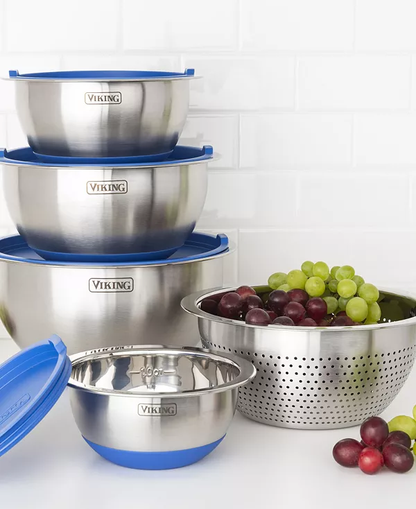 Приготовление еды по-домашнему стало проще с этим профессиональным набором из 9 мисок из нержавеющей стали с силиконовым дном и крышкой от Viking. Изготовленные из прочной нержавеющей стали, эти миски идеально подходят для подготовки, смешивания, подачи и всего остального.