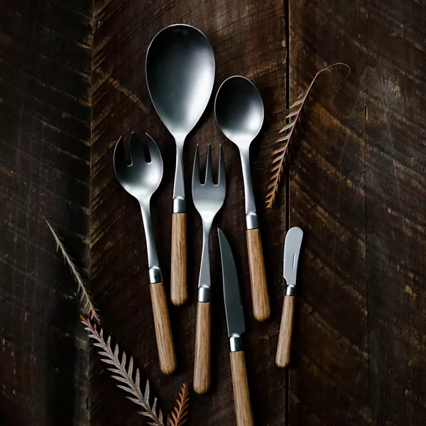 Сервировочная ложка Albero Oak нежно-коричневого цвета с ручками из теплого дерева, прочная благодаря высококачественному полиэстеру и нержавеющей стали 18/10.