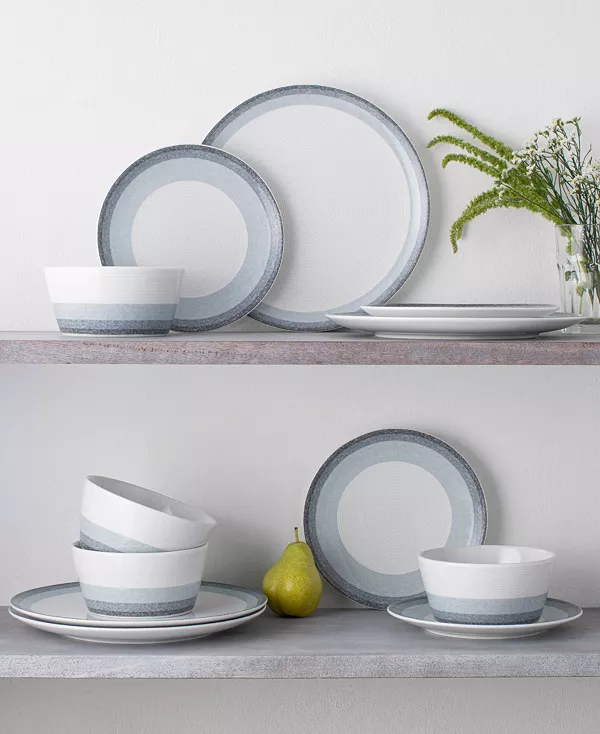 В комплект входит: 4 обеденные тарелки Coupe, 4 тарелки для салата Coupe, 4 миски для хлопьев