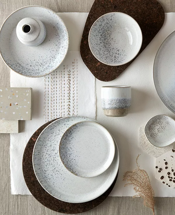 Kiln – это настоящее чествование британского мастерства, сочетающее в себе мягкую, успокаивающую палитру мелово-белого, овсяного и серого, которые гармонично сочетаются друг с другом. Эффект глазури, имитирующей веснушки, совершенно индивидуален для каждого предмета и делает каждый предмет Kiln уникальным, но при этом все предметы коллекции создают удобную и одновременно лаконичную коллекцию.