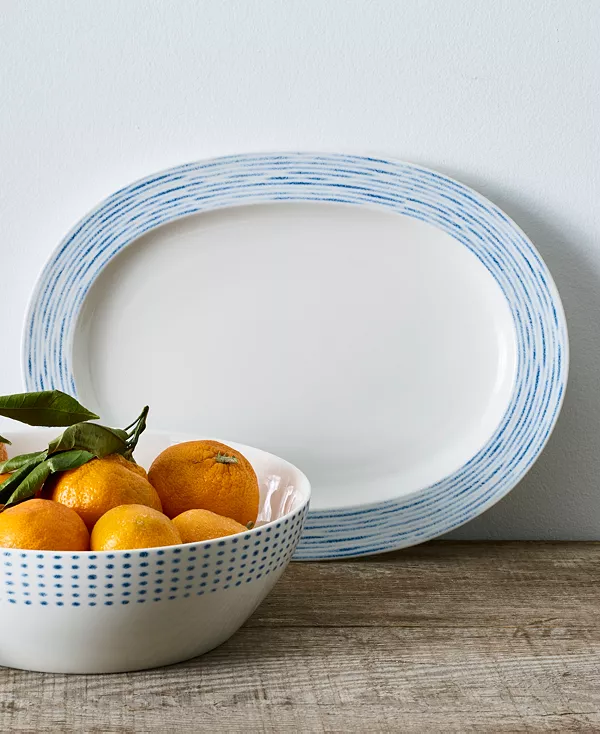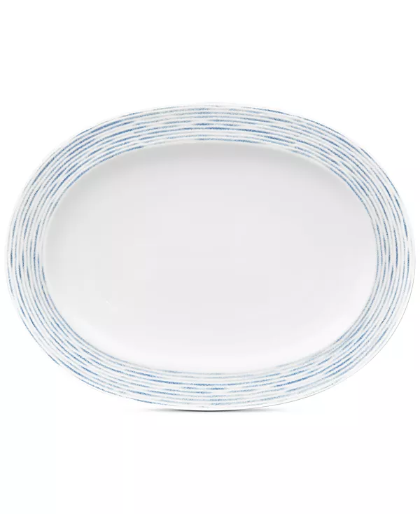 Это современное овальное блюдо станет ярким и полезным дополнением к вашей коллекции столовой посуды Noritake Blue Hammock. Оно отличается современным дизайном с мягкими синими линиями на белом фарфоре.
