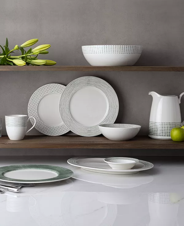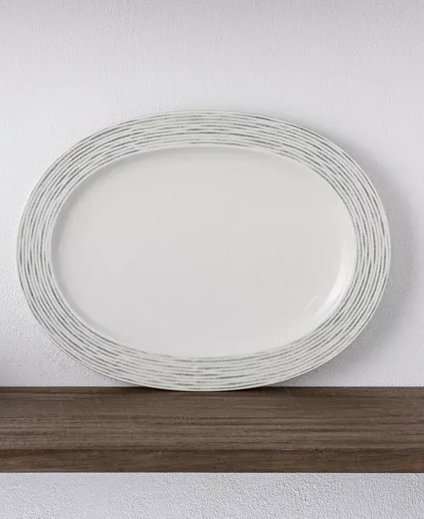 Это современное овальное блюдо станет ярким и полезным дополнением к вашей коллекции столовой посуды Noritake Blue Hammock. Оно отличается современным дизайном с мягкими синими линиями на белом фарфоре.