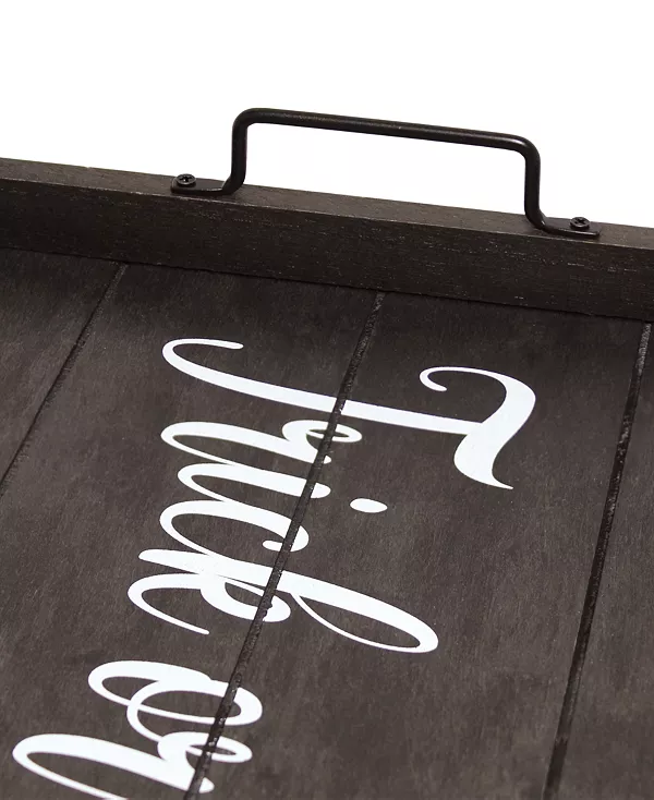 Освежите свой дом этим деревянным подносом с чёрными металлическими ручками. Этот поднос — тренд, который придаст вашему дому уютную атмосферу фермерского дома. Его можно подавать в постель, подавать напитки для вечеринок, еду или использовать в качестве центрального элемента обеденного/журнального столика, кухонной стойки или пуфа.