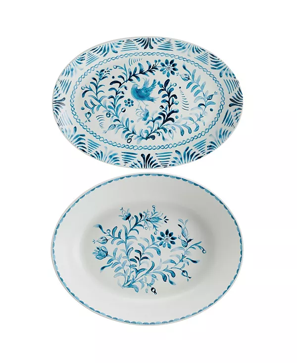 Сервировочный набор: Включает одну овальную сервировочную миску объемом 4 кварты размером 14-1/4 дюйма в длину, 11-1/2 дюйма в ширину и 3 дюйма в высоту и одно сервировочное блюдо размером 16-1/2 дюйма в длину, 11-1/2 дюйма в ширину и 1-1/2 дюйма в высоту