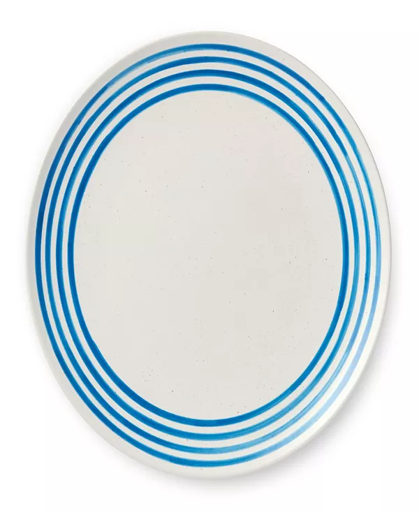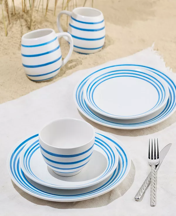 Вневременной дизайн в прибрежном стиле: четкая белая основа с яркими концентрическими полосами добавит морской элегантности любой сервировке стола.