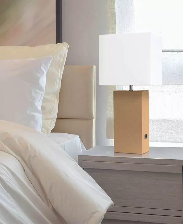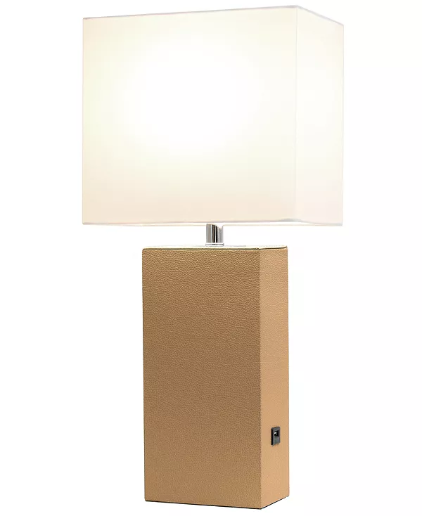 Современная кожаная настольная лампа с USB Elegant Designs, beige