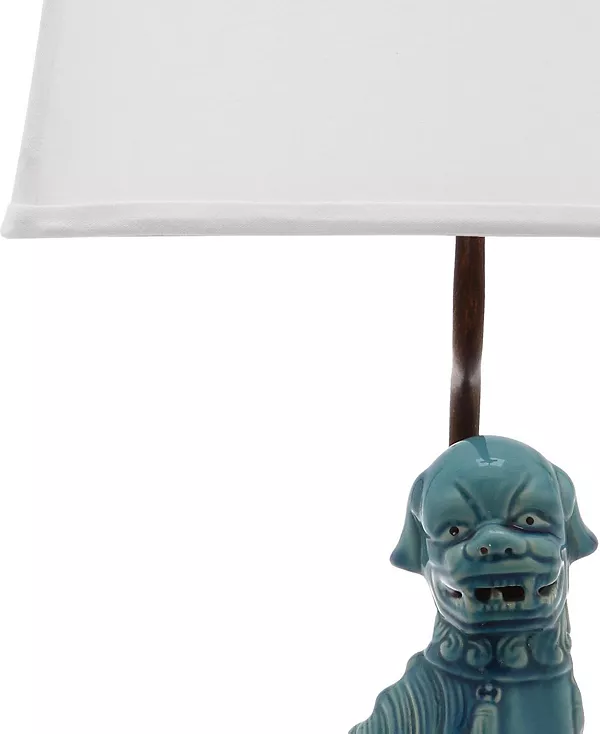 Добавьте игривый акцент в азиатском стиле с настольной лампой Foo Dog от Safavieh. Глянцевая, приглушенно-синяя отделка этой собаки дополняется ножкой из темного дерева и абажуром в форме колокольчика.
