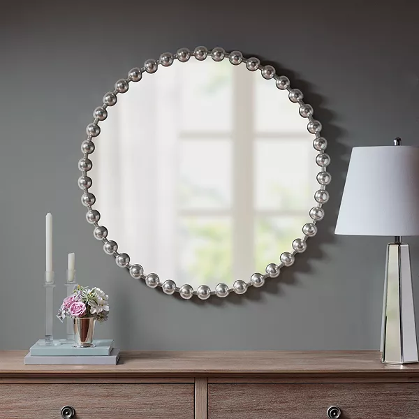 JLA Home представляет потрясающую, многомерную красоту для вашего пространства с помощью сферической окантовки и позолоченного тона великолепного зеркала Madison Park Signature Marlowe Decor.