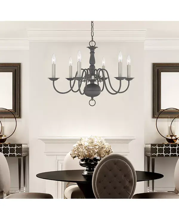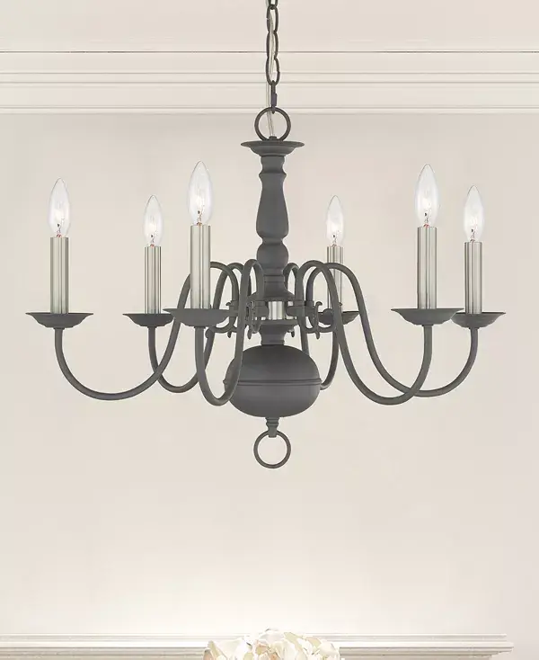 Осветите свое пространство элегантно с помощью этой классической люстры Williamsburg с шестью лампами и плавными изогнутыми линиями.