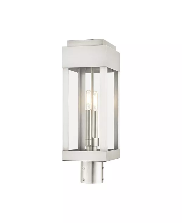 Уличный фонарь York 2 Lights на столбе Livex, silver-tone