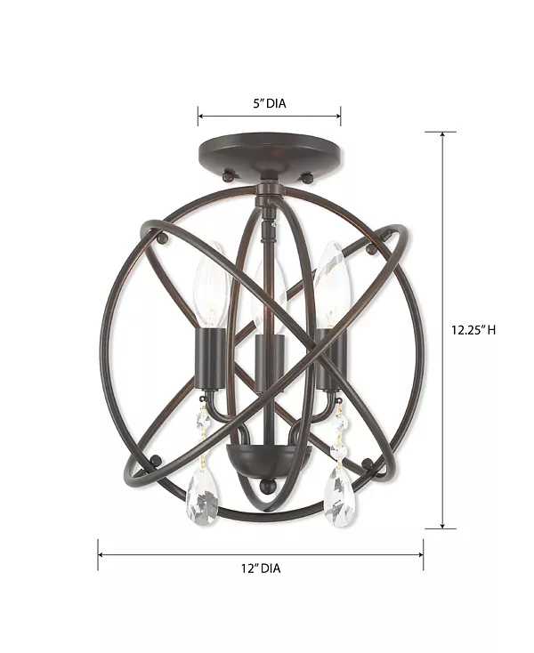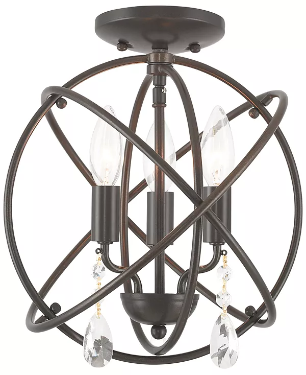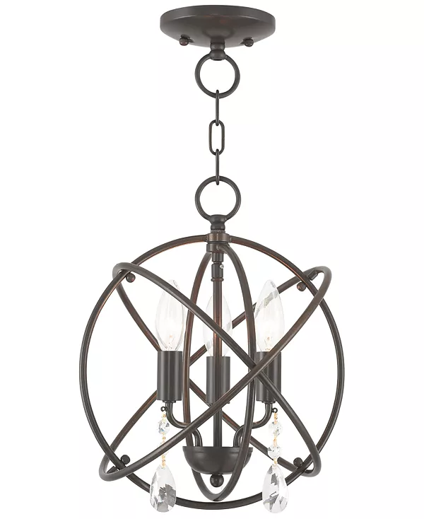 Подвесной светильник Aria 3 light 12" от Livex, изготовленный вручную, предлагает стильную интерпретацию традиций. Металлический обруч в стиле атомов дополнен кристаллами, свисающими с трёх лампочек внутри.