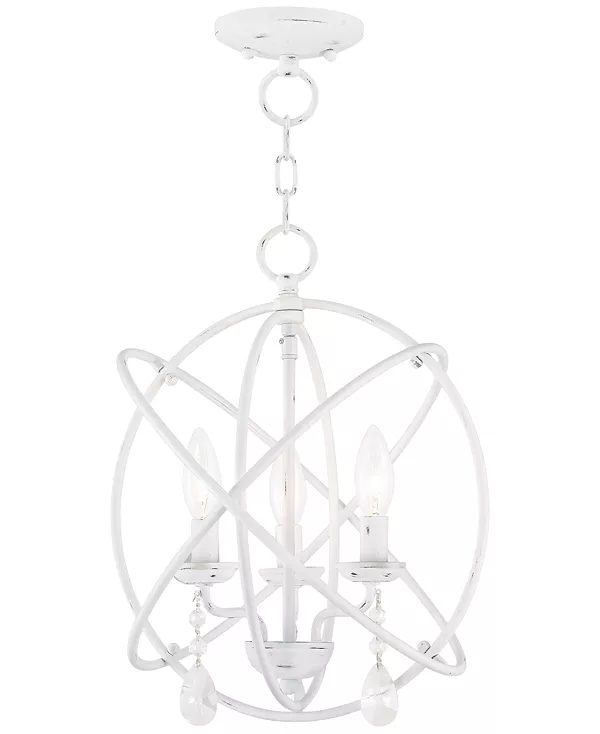 Подвесной светильник Aria 3 light 15" от Livex, изготовленный вручную, представляет собой стильную интерпретацию традиций. Металлический обруч в стиле атомов дополнен кристаллами, свисающими с трёх лампочек внутри.