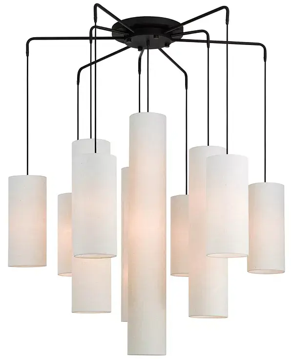 Поразительно современные и элегантные, кремово-белые цилиндрические плафоны ручной работы Strathmore 10-Light Chandelier от Livez в твердом переплете разной высоты в сочетании с гладким стальным каркасом создают яркий свет, дополненный космополитичным стилем.