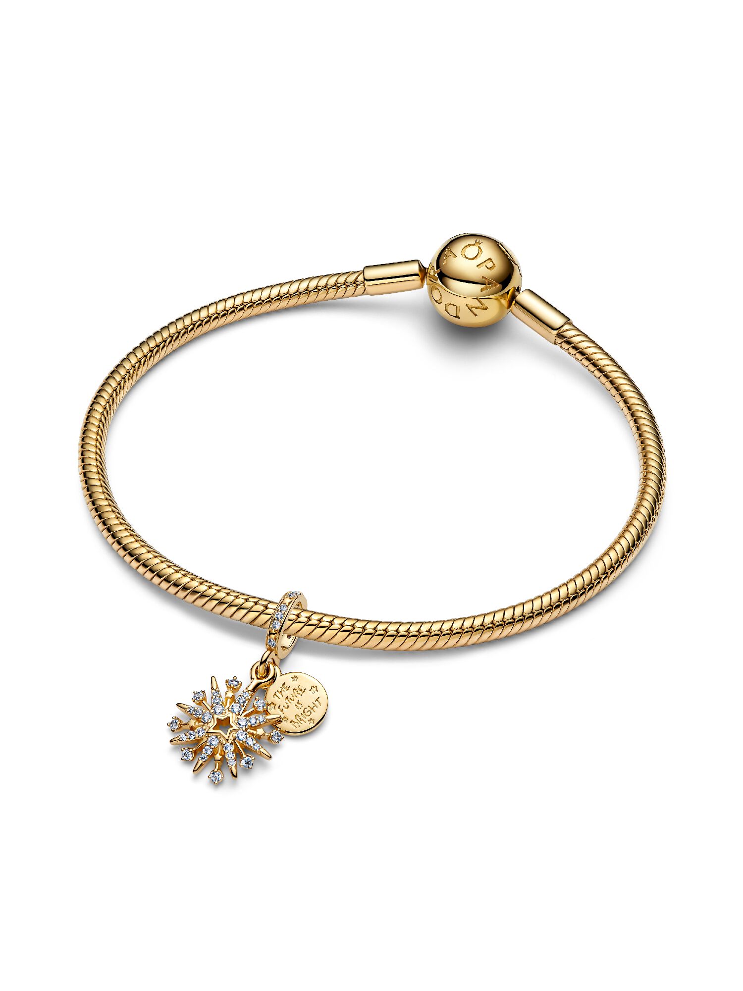 Заявите о себе с помощью этого шарма, который сияет, словно праздник. Украшение с созвездием звёзд и камней, а также выгравированной надписью Будущее светло, — это знак, чтобы ловить момент.