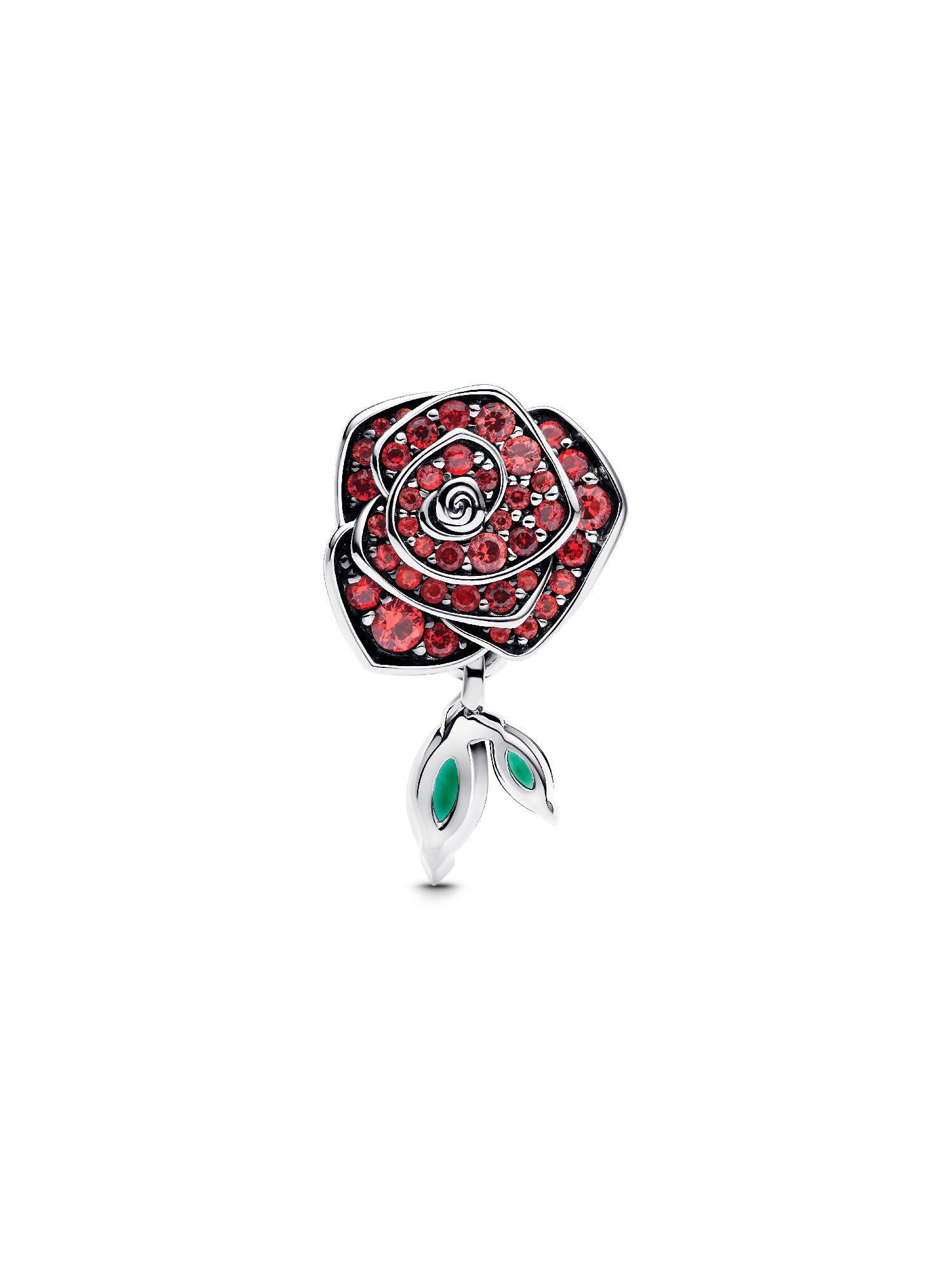 Воплотите в себе цветочную элегантность с нашим шармом Сверкающая роза в цвету – символичным украшением из стерлингового серебра. Изящный дизайн шарма, передающего нежную природу цветка, подчеркивает многослойный эффект лепестков, отражающий красоту цветка, и покрыт красными искусственными кристаллами. Два зелёных камня, символизирующих листья, подвешены под цветком, чтобы придать ему реалистичность и движение. Этот шарм Pandora Роза идеально подходит в качестве жеста любви к близкому человеку или станет значимым дополнением к вашей коллекции. Он непременно сохранит романтику.