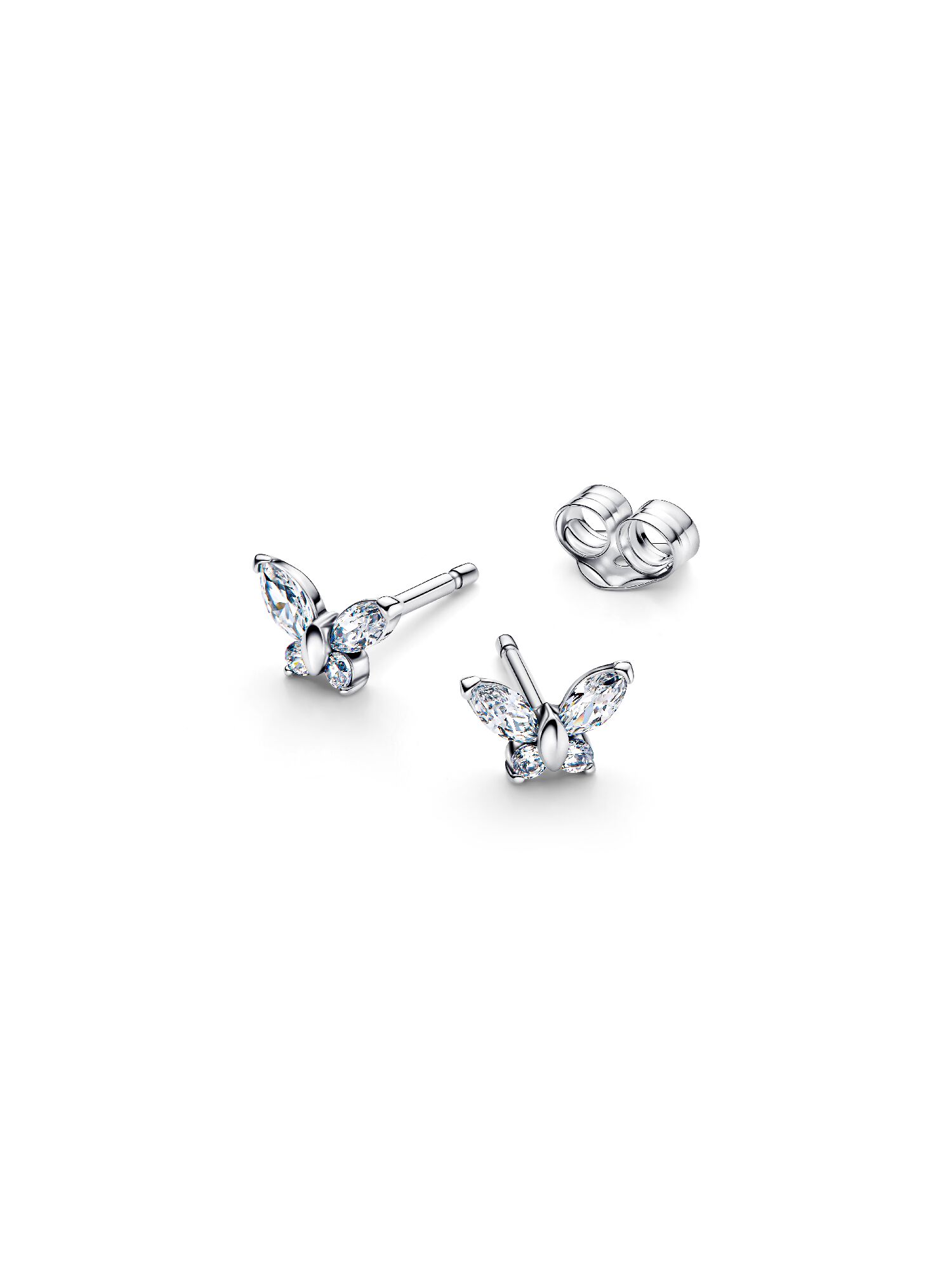 Запечатлейте красоту преображения с нашими серьгами-гвоздиками в форме бабочек. Они украшены прозрачными кубическими цирконами и изготовлены из стерлингового серебра — это знак, что пора дать волю своему стилю.
