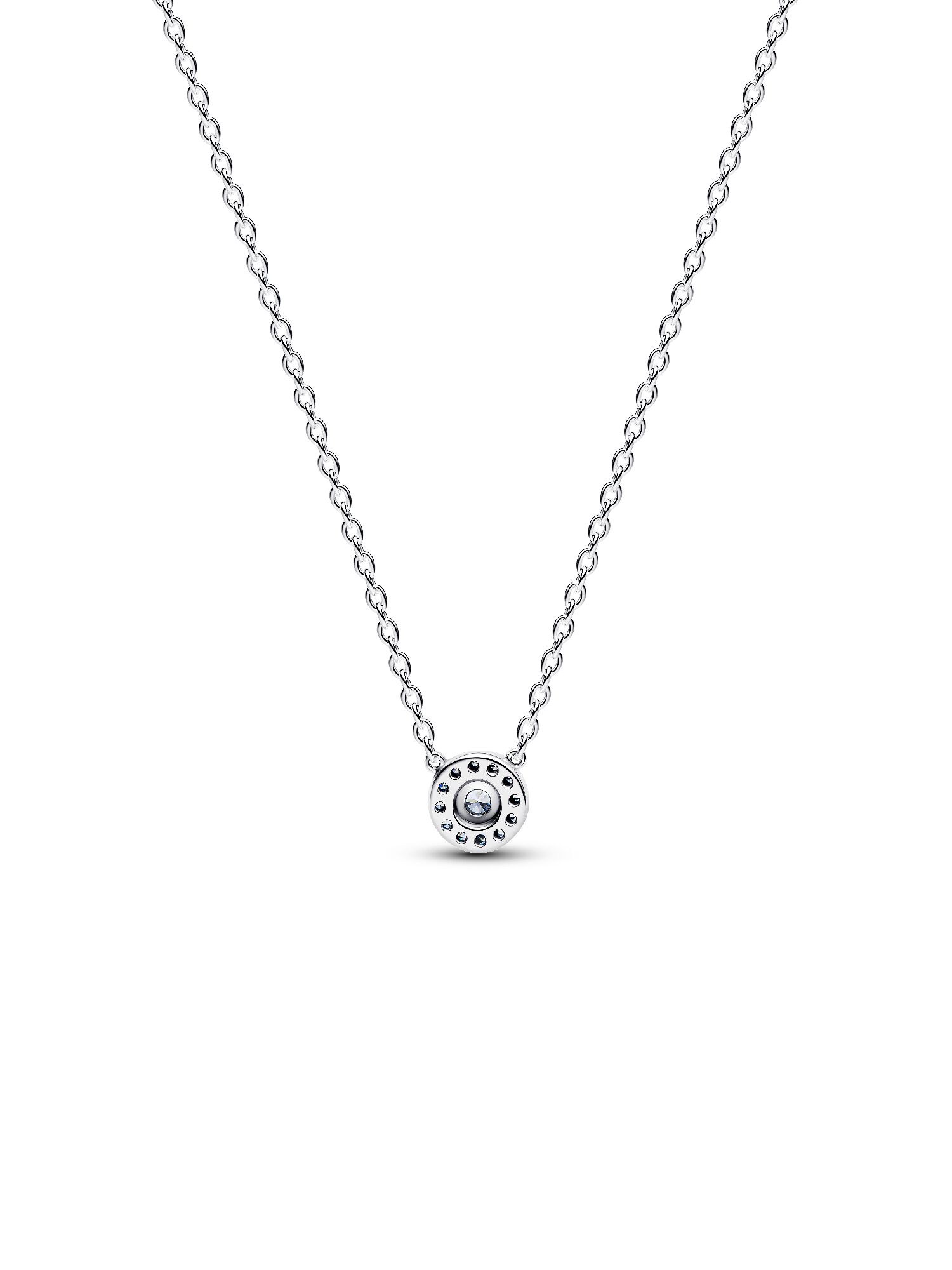 Подвеска-паве воплощает в себе непреходящую элегантность. Она украшена сверкающим ореолом и кубическим цирконием, а регулируемая цепочка с подвеской в виде камня завершает образ.