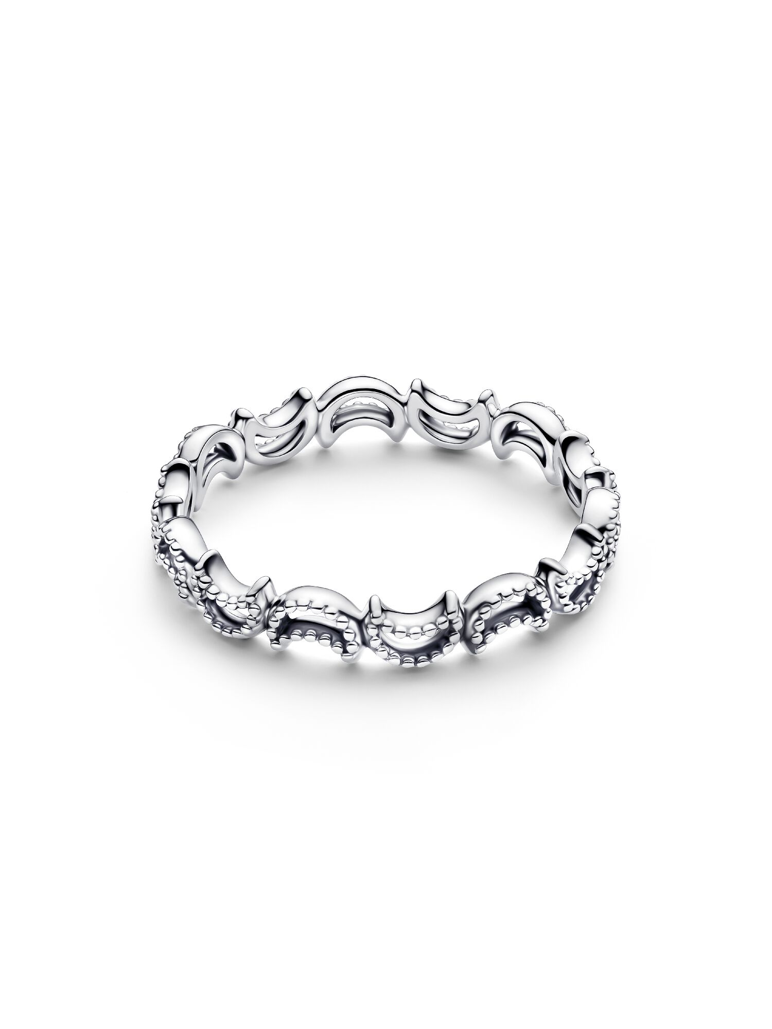 Ощутите магию ночного неба. Наше серебряное кольцо-полумесяц украшено рядом соединенных лун, украшенных бусинами – символом космического единства.