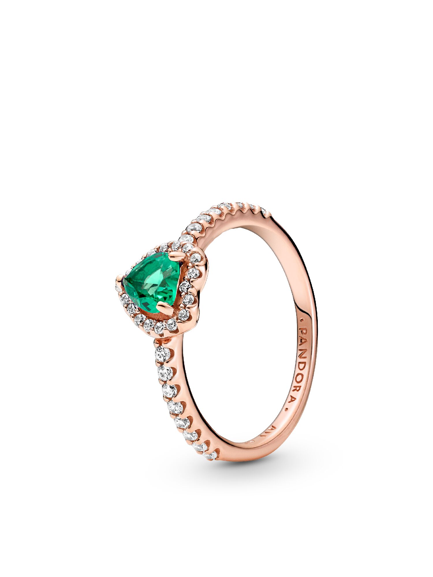 Подчеркните свой стиль. Этот комплект колец включает в себя зелёный камень в форме сердца на ободке из розового золота, а также потрясающее кольцо в форме вилочки с множеством кубических цирконий, придающих изумительный блеск.