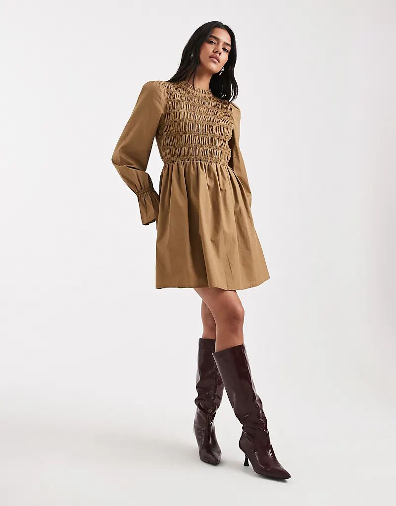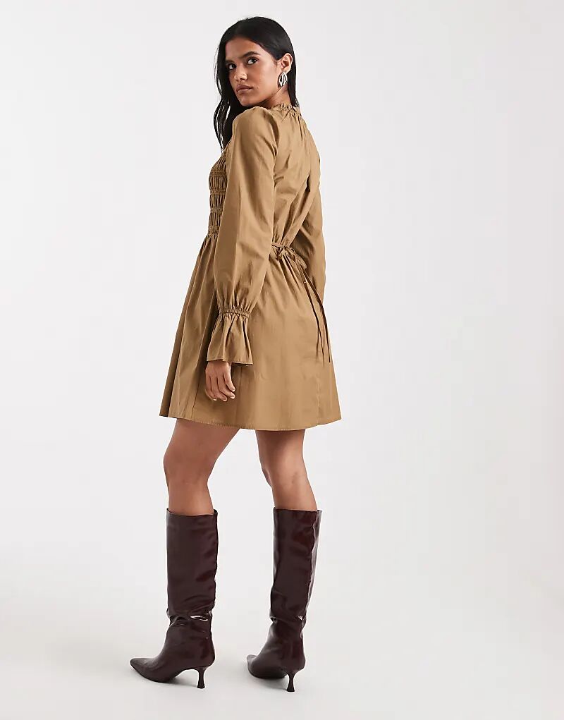 Коричневое мини-платье с присборенным лифом New Look 2 953₽