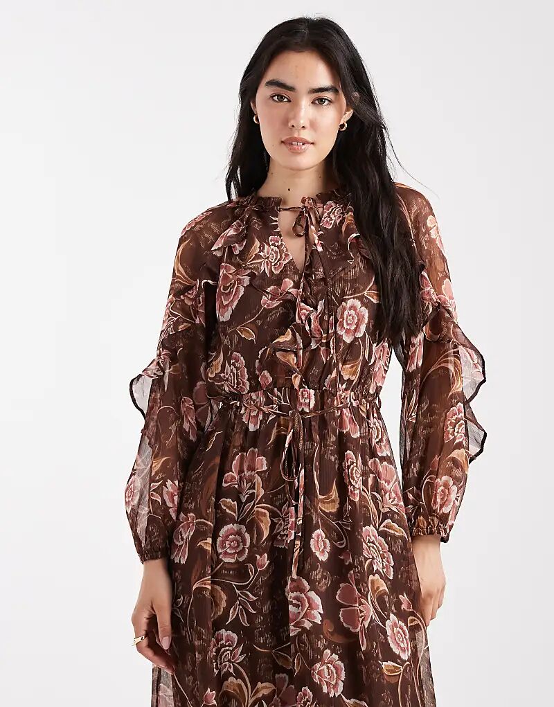 Платье миди New Look из шифона с коричневым узором 6 334₽