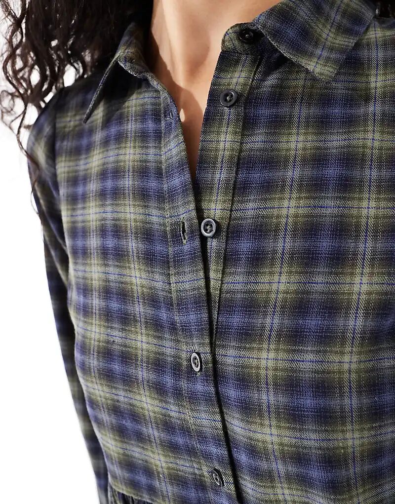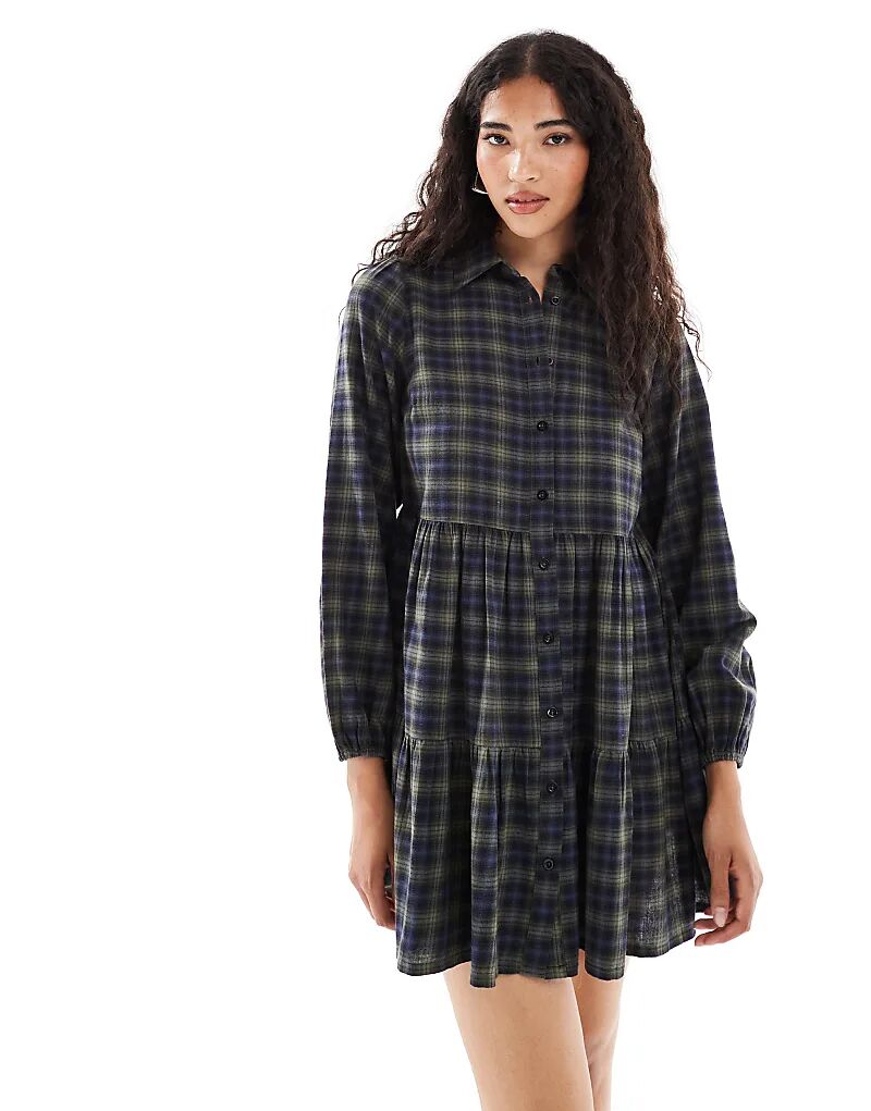 Мини-платье New Look в клетку с длинными рукавами и зеленым узором
