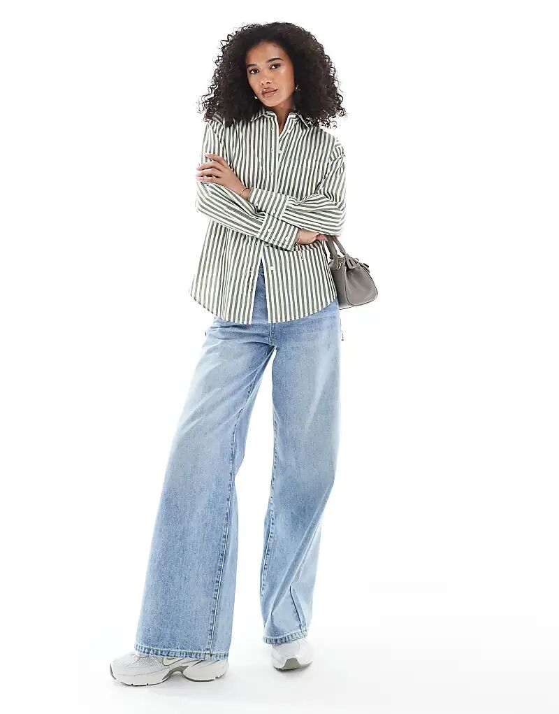 Рубашка New Look с полосатым карманом зеленого цвета 5 003₽
