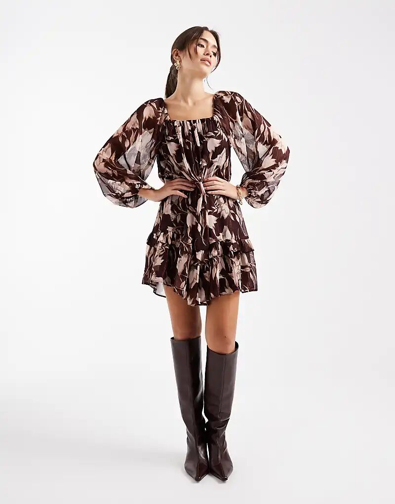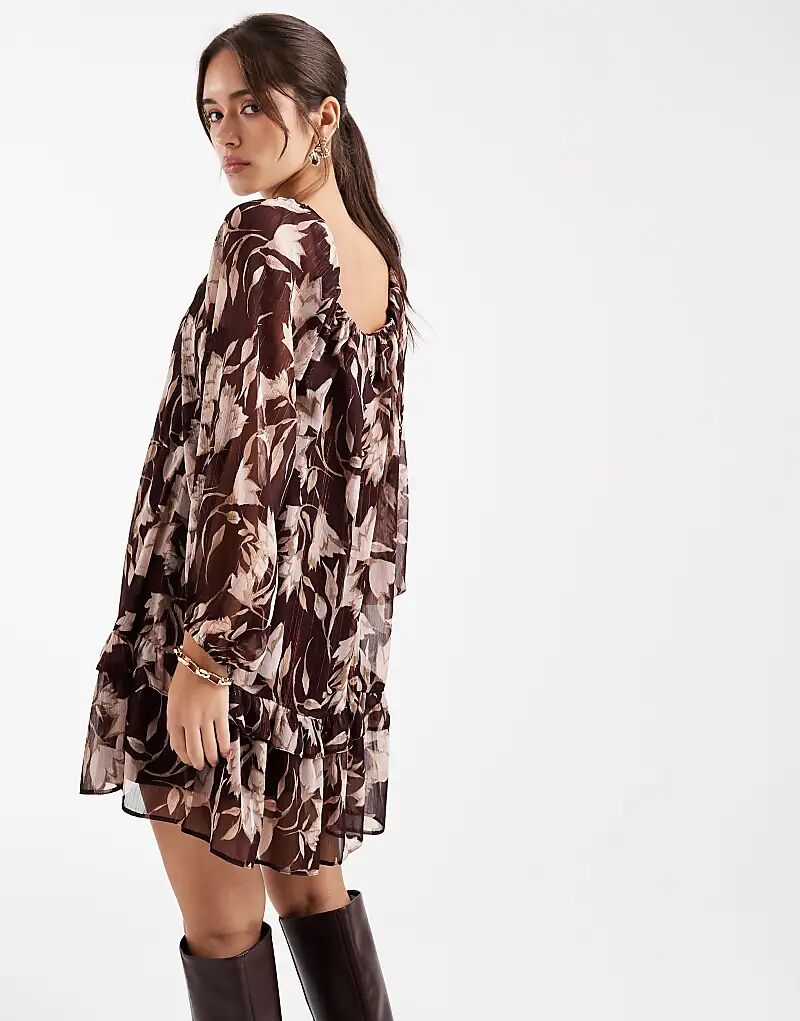 Мини-платье New Look с цветочным принтом фиолетового цвета 4 322₽