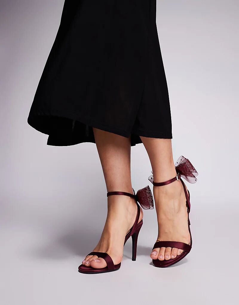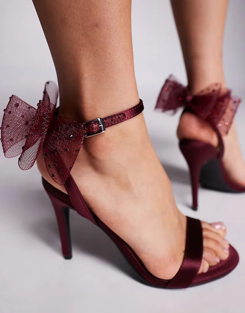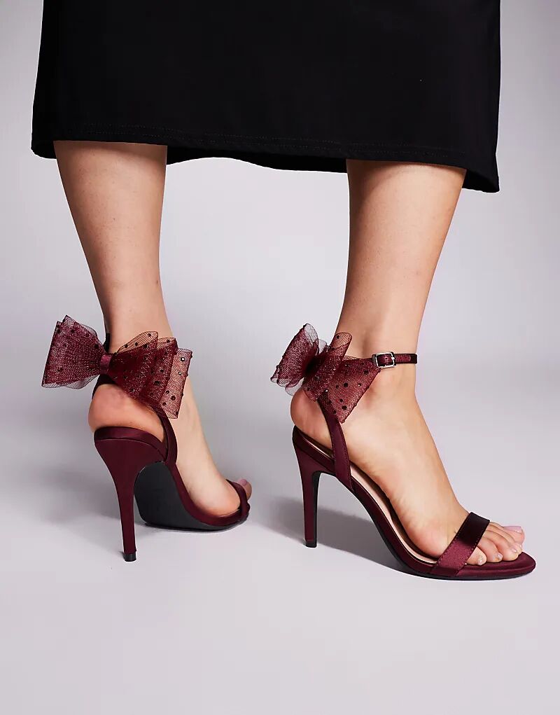 Босоножки New Look на каблуке с сетчатым бантом бордового цвета
