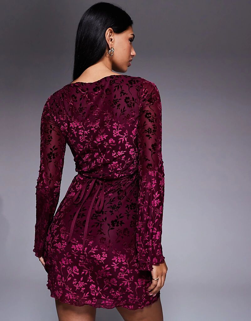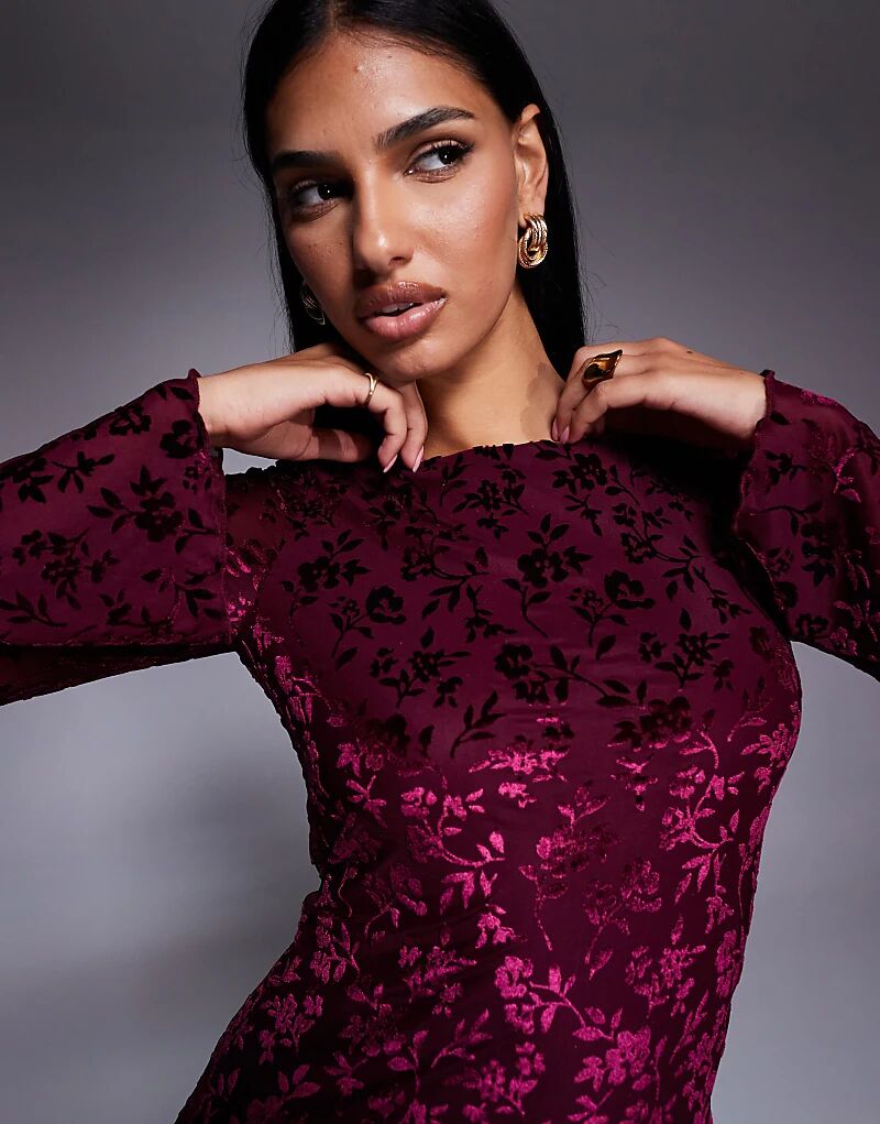 Мини-платье New Look с флокированным узором бордового цвета 5 502₽