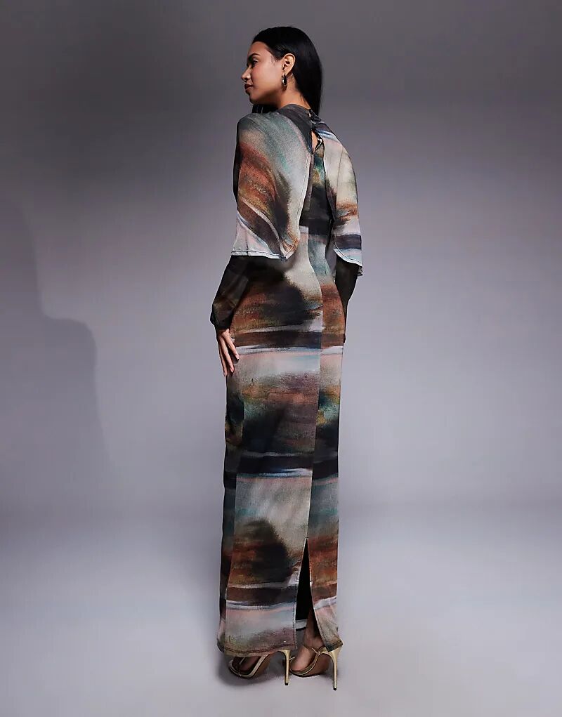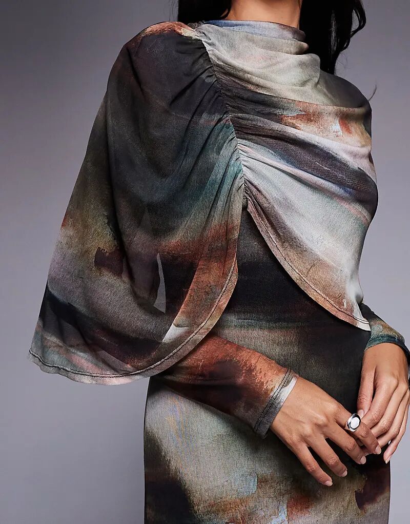 Платье-накидка макси Daska через плечо с абстрактным принтом 11 419₽