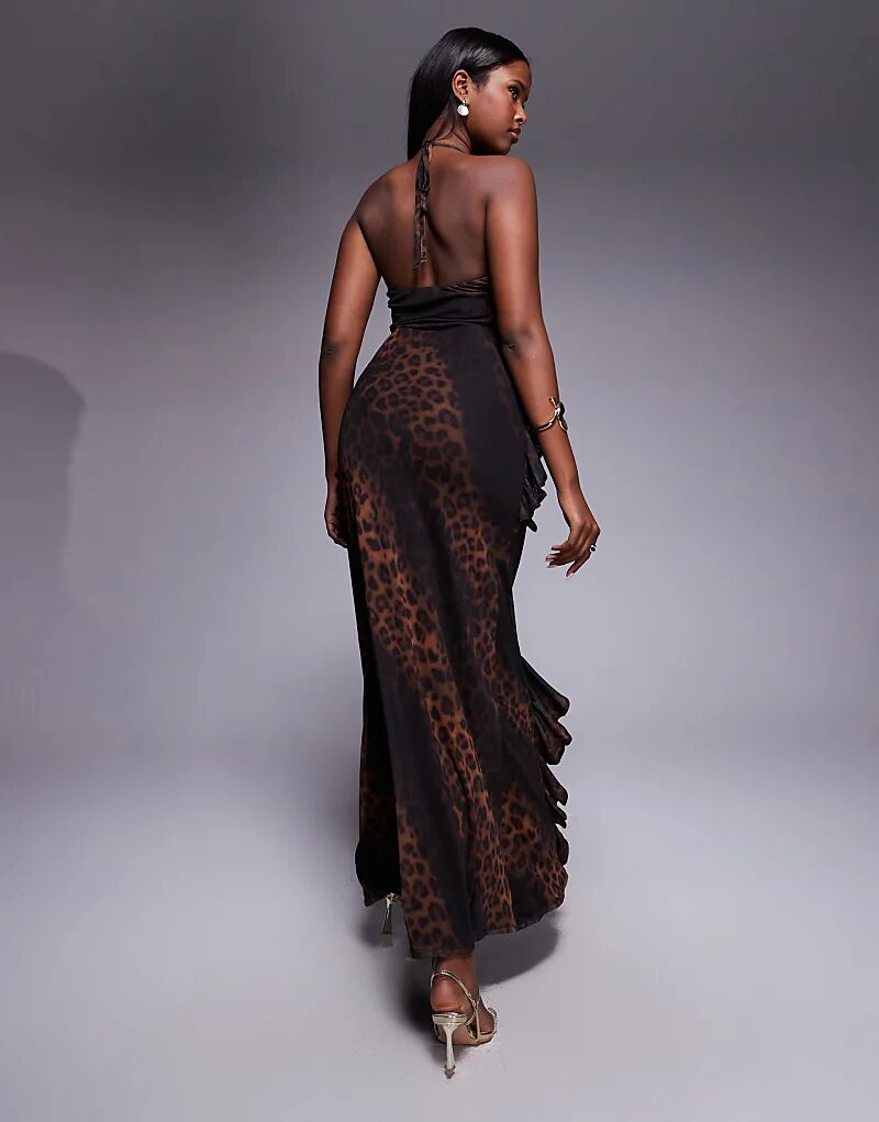 Платье макси ASOS DESIGN с сетчатым лифом и оборкой, с леопардовым принтом